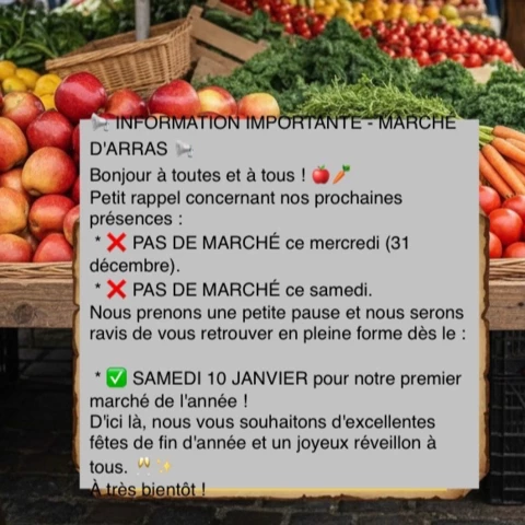 Vous pouvez nous retrouver sur le marché d'Arras les mercredis et les samedis.🤩